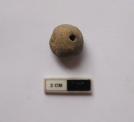 | Description / विवरण | A terracotta bead in a globular shape. It is gray in color. |