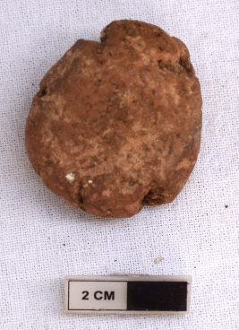 | Description / विवरण | It is an almost circular terracotta sealing of baked clay, the impression is not clear due to weathering. |