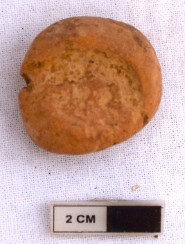 | Description / विवरण | It is a terracotta sealing of baked clay. There is a wheel at the sealing, the legend is weathered and not readable. |