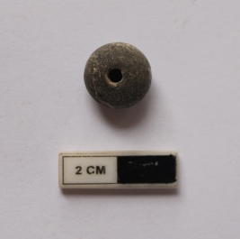 | Description / विवरण | A terracotta bead in a circular shape. It is gray in color. |