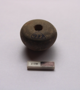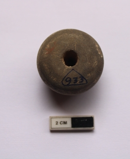 | Description / विवरण | A bead in a arecanut shape. It is dull gray in color and partially damaged in condition. |