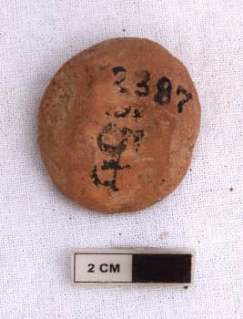 | Description / विवरण | It is an almost circular terracotta sealing of baked clay, the impression is not clear due to weathering. |