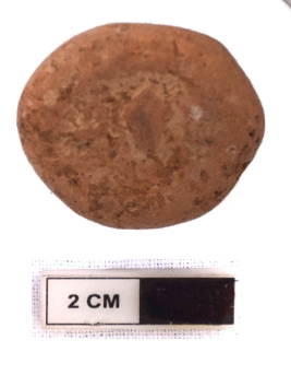 | Description / विवरण | It is a circular terracotta sealing of baked clay, the impression of wheel is observed. |