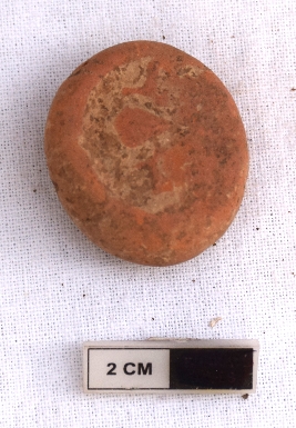 | Description / विवरण | It is a terracotta sealing of baked clay, the legend has worn out, the impression of wheel is observed. |