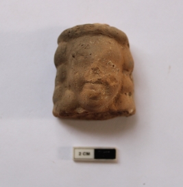 | Description / विवरण | A terracotta broken head of human. It is dull red in color. |