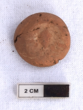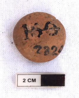 | Description / विवरण | It is a Terracotta sealing of baked clay, the legend at the back has worn out. There is a wheel at the back. |
