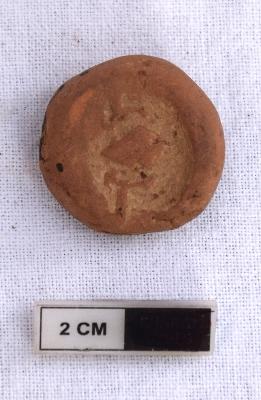 | Description / विवरण | It is a terracotta sealing of baked clay, the legend has worn out, the impression of two deer and a wheel in-between is observed. |