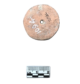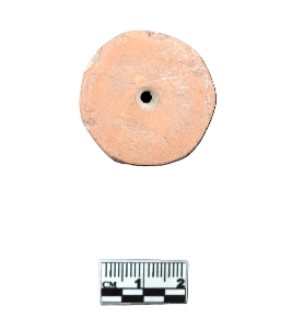 | Description / विवरण | A terracotta wheel without a hub in dull red color. The peripheries are slightly mutilated. |