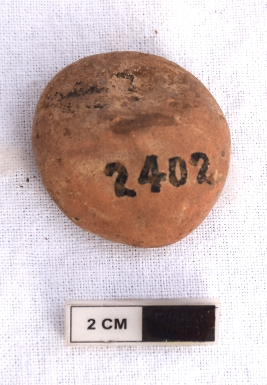 | Description / विवरण | It is a terracotta sealing of baked clay. There is a wheel at the sealing, the legend is weathered and not readable. |