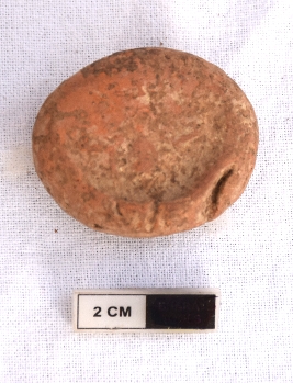 | Description / विवरण | It is a terracotta sealing of baked clay. There is a wheel at the sealing, the legend is weathered and not readable. |