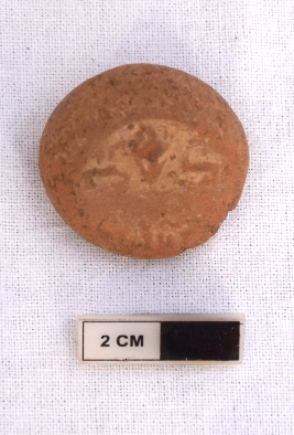 | Description / विवरण | It is a terracotta sealing of baked clay, depicting two deer and a wheel in-between, the legend is weathered and not readable. |