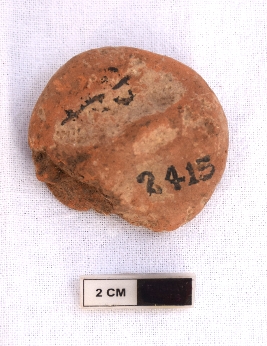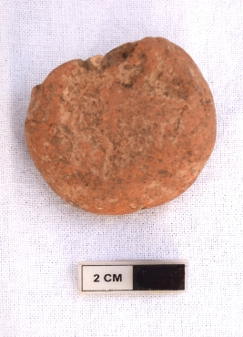 | Description / विवरण | It is a terracotta sealing of baked clay. There is a wheel at the sealing, the legend is weathered and not readable. It is broken at one side of its edge. |