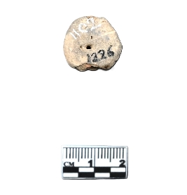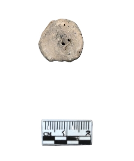 | Description / विवरण | A mutilated terracotta wheel without a hub. The periphery is party broken and roughly roundish in shape. This miniature wheel is made from a grinded potsherd. |