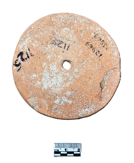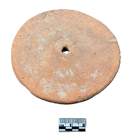 | Description / विवरण | Terracotta wheel whit a hub. It is painted in dull red color over a buff surface |