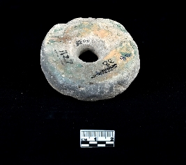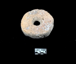 | Description / विवरण | Terracotta wheel without a hub and a wider central hole. the dull red-brown surface is abraded and has several cracks on it. The periphery is roughly circular. |