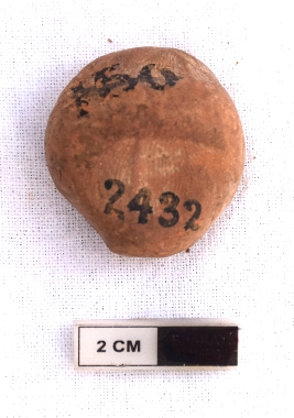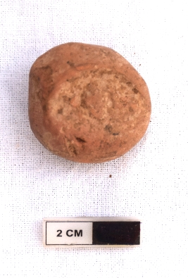 | Description / विवरण | It is a terracotta sealing of baked clay. There is a wheel at the sealing, the legend is weathered and not readable. |