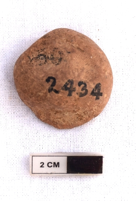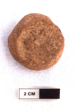 | Description / विवरण | It is a terracotta sealing of baked clay. There is a wheel at the sealing, the legend is weathered and not readable. |