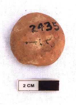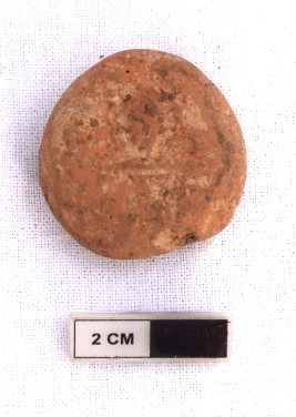 | Description / विवरण | It is a terracotta sealing of baked clay. The upper half, which is separated from the lower by double horizontal line, depicting two deer and a wheel in-between, the legend is weathered and not readable. |