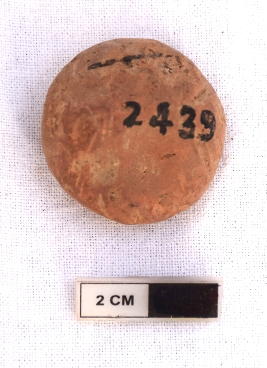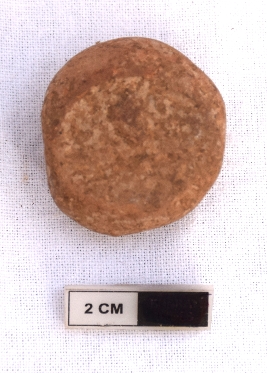 | Description / विवरण | It is a terracotta sealing of baked clay. There is a wheel at the sealing, the legend is weathered and not readable. |