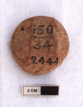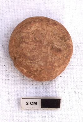 | Description / विवरण | It is a terracotta sealing of baked clay, depicting two deer and a wheel in-between, the legend is weathered and not readable. |