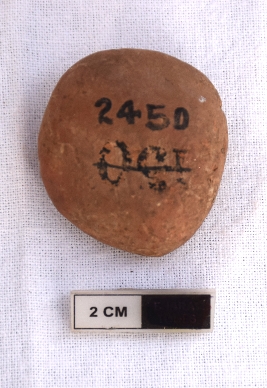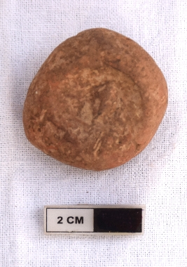 | Description / विवरण | It is a terracotta sealing of baked clay. There is a wheel at the sealing, the legend is weathered and not readable. |