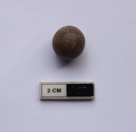 | Description / विवरण | A sling ball in a spherical shape. It is gray in color. |