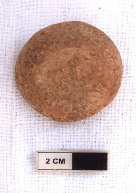 | Description / विवरण | It is an almost circular terracotta sealing of baked clay, the impression of wheel is observed. |