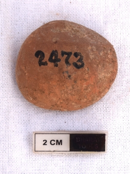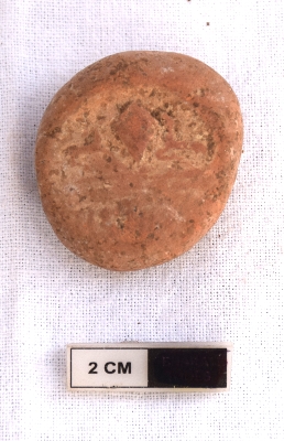| Description / विवरण | It is an almost circular terracotta sealing of baked clay, the impression of wheel is observed. |