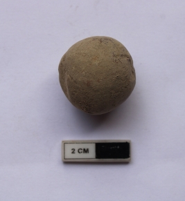 | Description / विवरण | A sling ball in a spherical shape. It is gray in color |