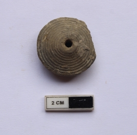 | Description / विवरण | A terracotta bead in a circular shape. It is gray in color and broken in condition. |