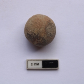 | Description / विवरण | A sling ball in a spherical shape. It is red in color . |