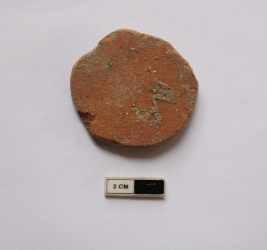 | Description / विवरण | A terracotta hopscotch in a circular shape. It is red in color . |