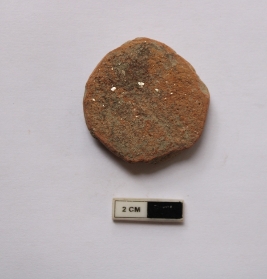 | Description / विवरण | A terracotta hopscotch in a circular shape. It is red in color and partially damaged. |