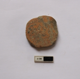 | Description / विवरण | A terracotta hopscotch in a circular shape. It is red in color and partially damaged. |