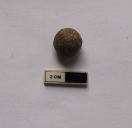 | Description / विवरण | A terracotta sling ball in a spherical shape and it is red in color. It is damaged in condition. |