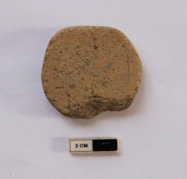| Description / विवरण | A terracotta hopscotch in a circular shape. It is red in color and damaged in condition. |