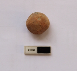 | Description / विवरण | A sling ball in a spherical shape. It is dull red in color. |