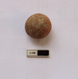 | Description / विवरण | A sling ball in a spherical. It is red in color. |