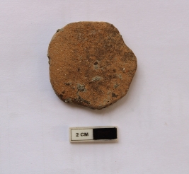 | Description / विवरण | A terracotta hopscotch in a circular shape. It is dull red in color and damaged in condition. |