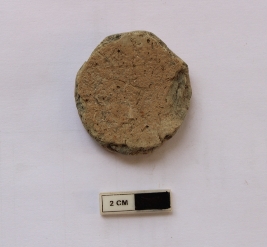 | Description / विवरण | A terracotta hopscotch in a circular shape. It is dull red in color and damaged in condition. |