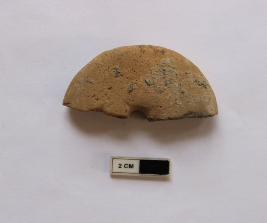 | Description / विवरण | A terracotta broken wheel and it is dull red in color. |