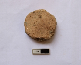 | Description / विवरण | A terracotta hopscotch in a circular shape. It is dull red in color. |