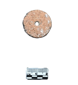 | Description / विवरण | A well baked, roughly modeled terracotta toy cart wheel without a hub. The dull red object is black along the section of its periphery and on one side,due to kiln firing.The surface looks weathered and chipped off. |