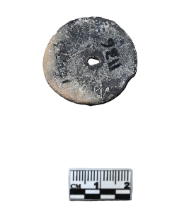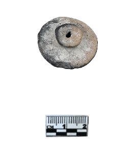 | Description / विवरण | well baked terracotta toy cart wheel in colored in white over a dull red surface. It has a prominent hub. The object is slightly broken near its periphery. The periphery appears roughly modeled. |