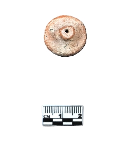 | Description / विवरण | Crudely modeled, handmade terracotta toy cart wheel with a very prominent hub. its dull red surface is abraded . |