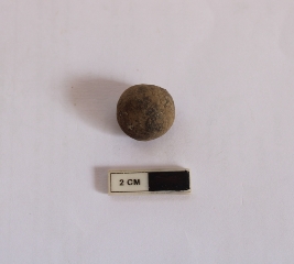 | Description / विवरण | A terracotta sling ball which is spherical in shape. It is dull in color and damaged in condition. |