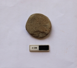| Description / विवरण | A terracotta hopscotch in a circular shape. It is dull gray and red in color and damaged in condition. |