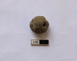 | Description / विवरण | A terracotta bead which is globular in shape and grey in color. It is damaged in condition. |