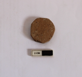 | Description / विवरण | A terracotta hopscotch in a circular shape. It is dull red in color. |