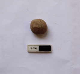 | Description / विवरण | A terracotta sling ball which is spherical in shape. It is dull red in color and damaged in condition. |
